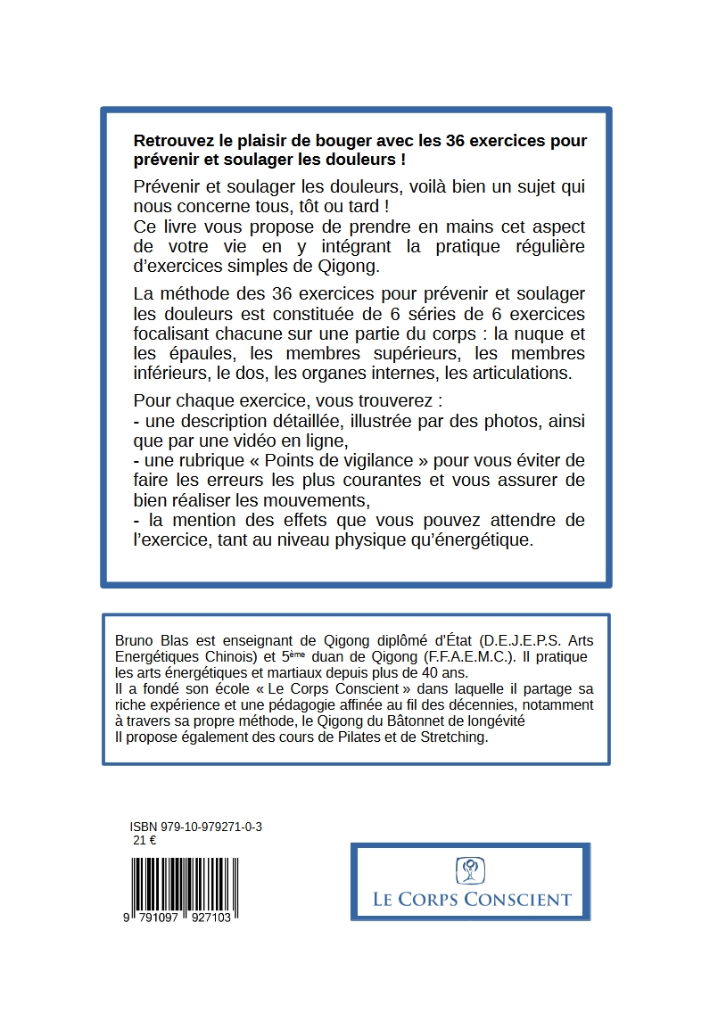 J’ai le plaisir de vous annoncer la publication de mon livre « Qigong, 36 exercices pour prévenir et soulager les douleurs ».
