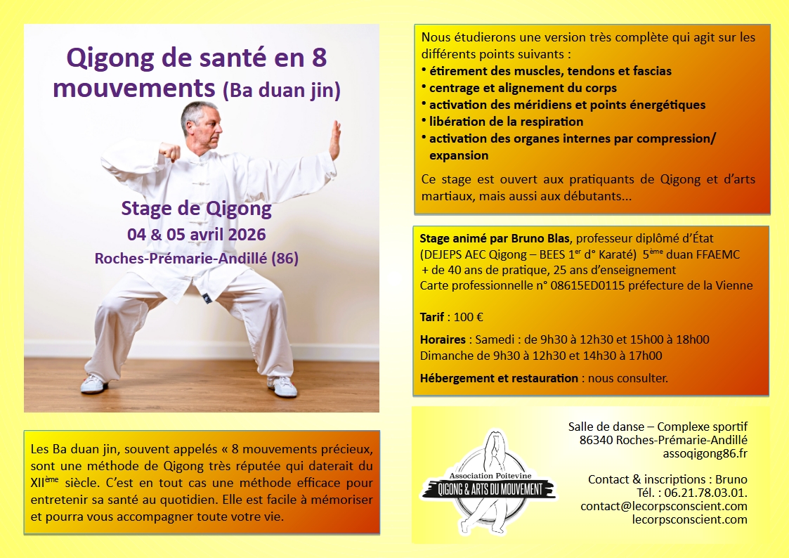 – 20 juin 2026 : Qigong de santé en 12 mouvements
